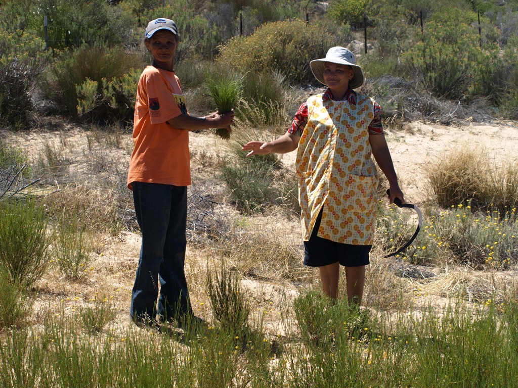 1118 4 Bush tea (5) Tempas & MariaAt the Heiveld Co-operative, near Nieuwoudtville in Namaqualand, made up of 63 small scale farms, we saw a rooibos tea plantation and met some ladies who had diversified this with building a small group of traditional huts as guesthouses. The Fairtrade premium has enabled the farmers to develop their business, particularly business initiatives for women, and support local schools and transport.