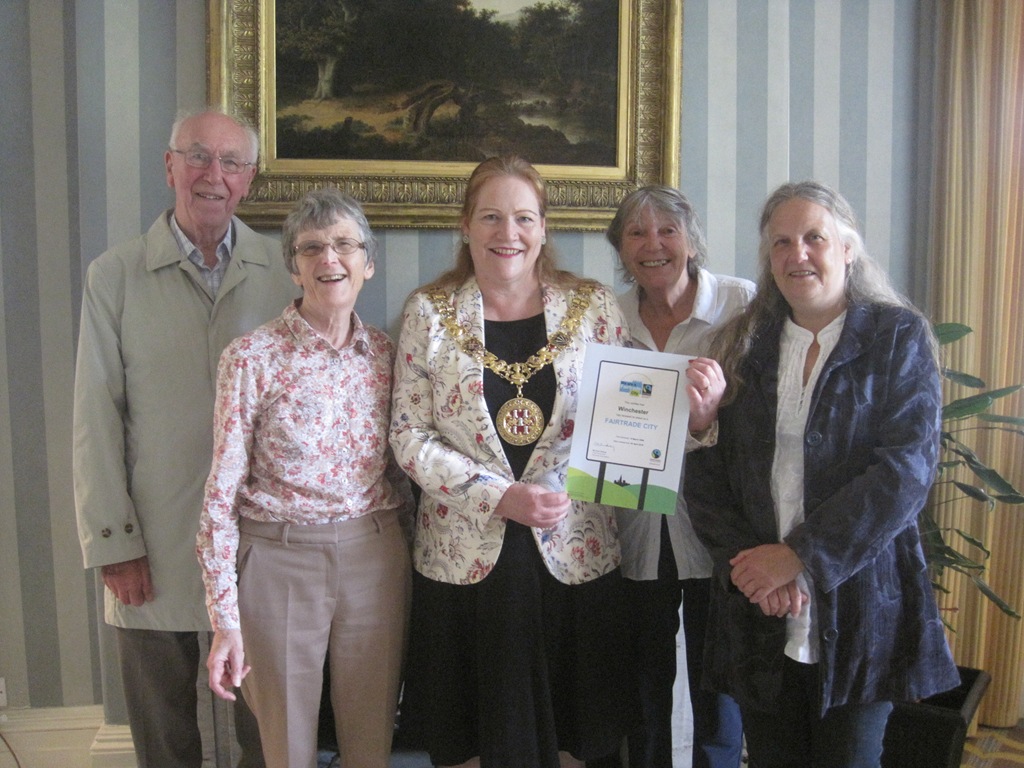 Our application for renewal of Fair Trade City status has been approved by the Fairtrade Foundation and the certificate was presented to the mayor, Councillor Jane Rutter, at Abbey House on 27 July 2016.IMG_4683