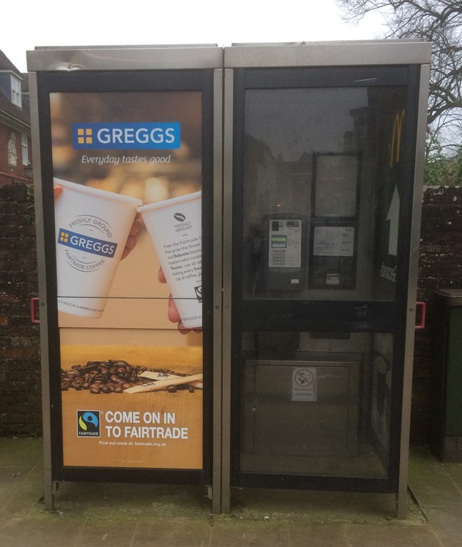 Good to see Fairtrade advertised on the phone box outside the Cathedral grounds – May 2018